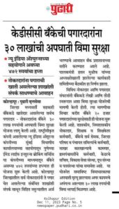 याबाबत अधिक माहिती अशी, बँकेने किसान क्रेडिट कार्ड योजनेअंतर्गत स्वभांडवलामधून पीक कर्ज घेणाऱ्या अडीच लाख शेतकऱ्यांचा प्रत्येकी दोन लाख रुपयांचा विमा उतरविला होता. तसेच; बँकेने सन २०२५-२६ सालाकरिता न्यू इंडिया एशोरन्स कंपनी अंतर्गत ईमेड लाईफ इन्शुरन्स ब्रोकिंग सर्विसेस- पुणे या कंपनीच्या माध्यमातून किसान क्रेडिट कार्डधारक अडीच लाख शेतकऱ्यांचा प्रत्येकी दोन लाख विमासुरक्षेचा विमा उतरविला आहे. विमा हप्त्याची तोशिस शेतकऱ्यांना लागू न देता बॅंकेने विमा हप्त्याची एक कोटींची ही रक्कम नफ्यातून भरली आहे. आत्तापर्यंत मृत शेतकर्‍यांच्या वारसांना पाच कोटीहून अधिक विमा रक्कम मिळाली आहे.