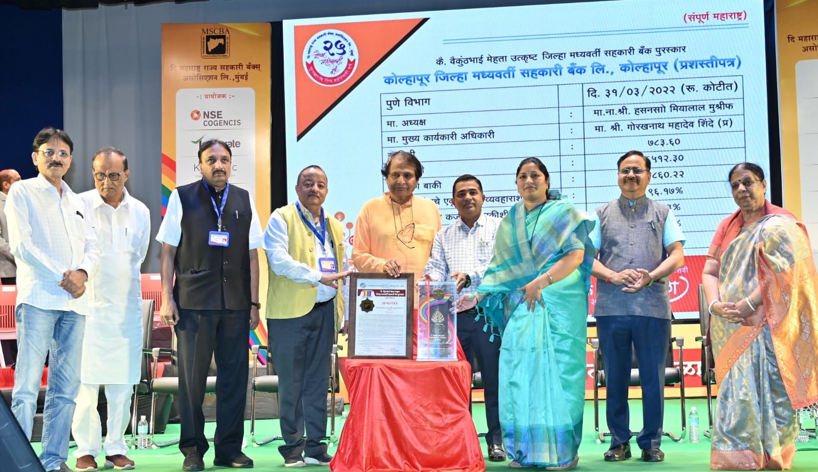 केडीसीसी बँकेला कै. वैकुंठभाई मेहता उत्कृष्ट जिल्हा मध्यवर्ती सहकारी बँक पुरस्कार
