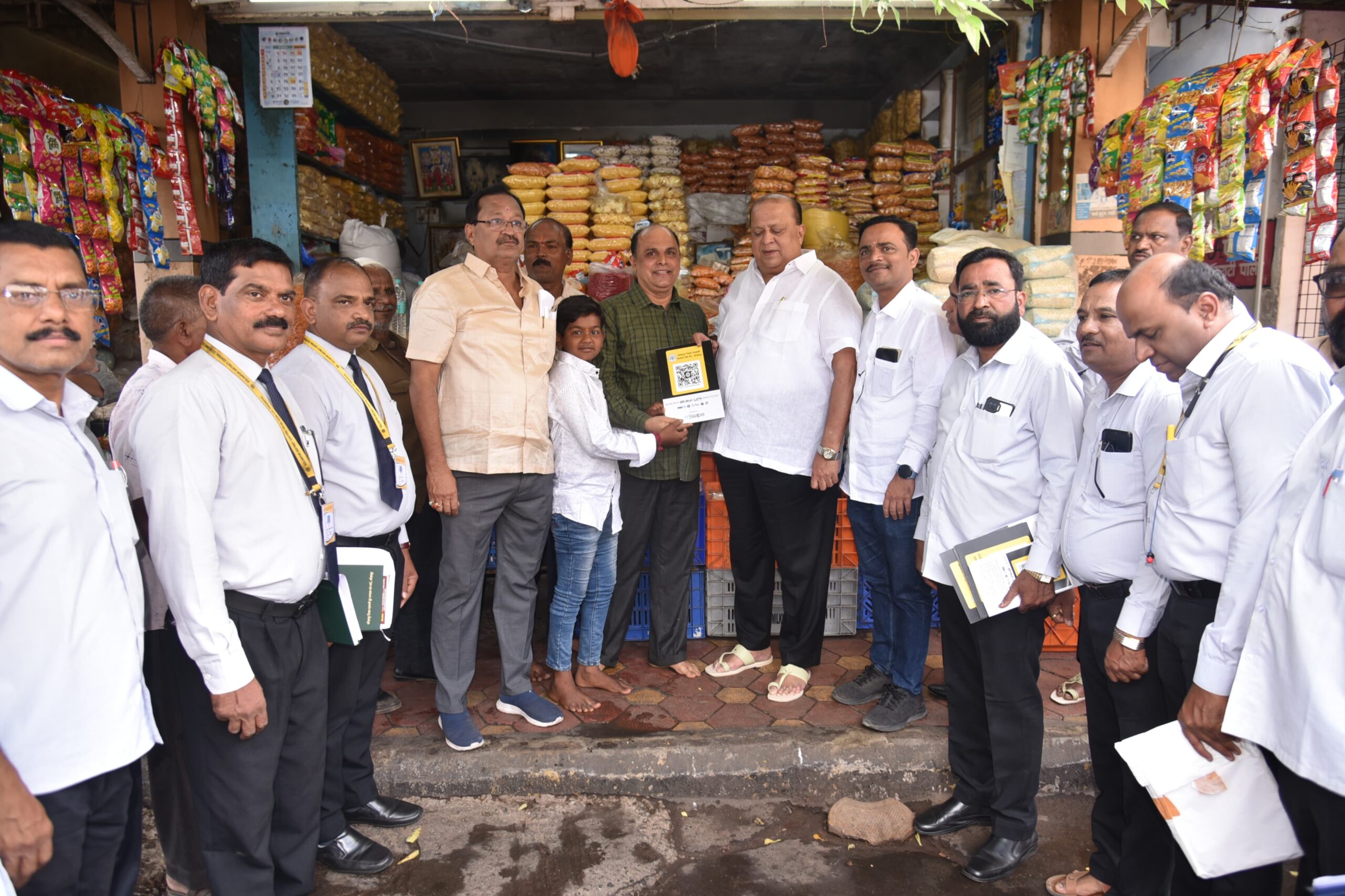 पालकमंत्री व केडीसीसी बँकेचे अध्यक्ष हसन मुश्रीफ यांनी छोटे-मोठे दुकानदार, व्यापारी, उद्योजक व व्यावसायिकांना बँकेच्या क्यू आर कोडचे वाटप केले.